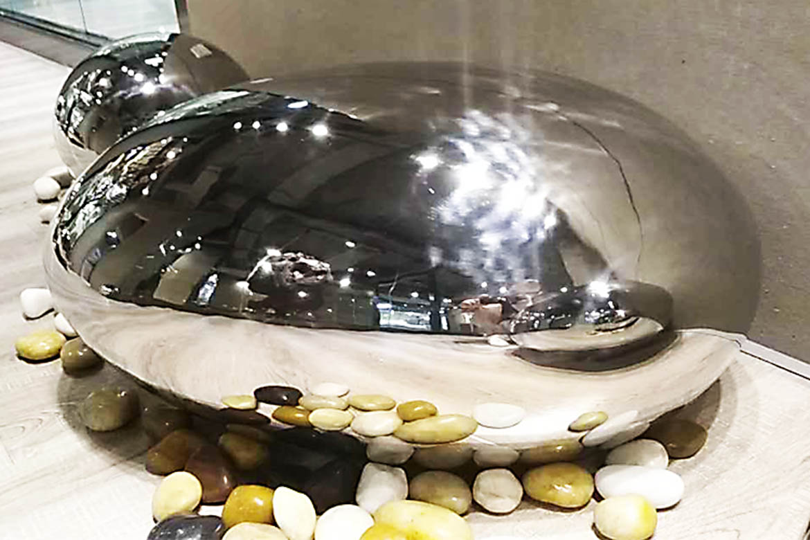 镜面不锈钢鹅卵石雕塑是运用不锈钢材质锻造而成的天然鹅卵石形状,为了艺术效果,表面进行镜面抛光处理的雕塑造型,主要用于文化广场、商业中心、办公环境、休闲公园、大学校园、小区花园等,能够为环境营造自然而高端的气氛。